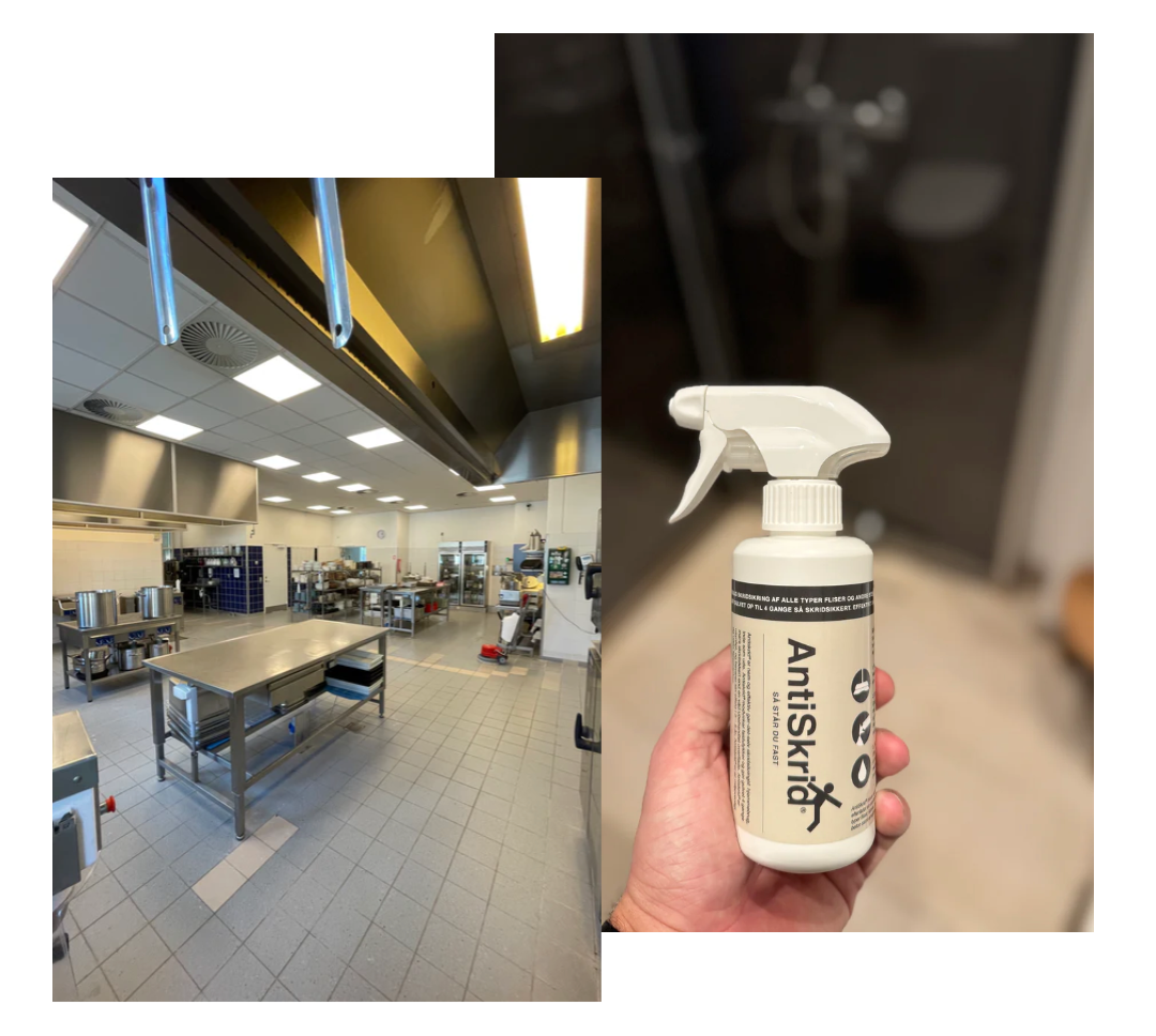 AntiSkrid Professionel er skabt til gulve med høj trafik! Med over 30 års erfaring og anerkendelse fra Arbejdstilsynet, er vi din garanti for kvalitet og sikkerhed. Behandlingen er langtidsholdbar, selv på de mest trafikerede gulve og tåler stærk kemi som kalkfjernere eller vejsalt ved udendørs brug. Vores erfarne team kommer ud med specialudstyr, så ingen opgave er for stor. AntiSkrid Professionel forebygger faldulykker og skader, så både medarbejdere og kunder kan færdes trygt.
