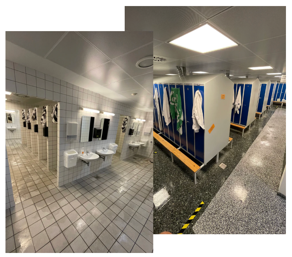 - Badeområder, omklædningsrum,